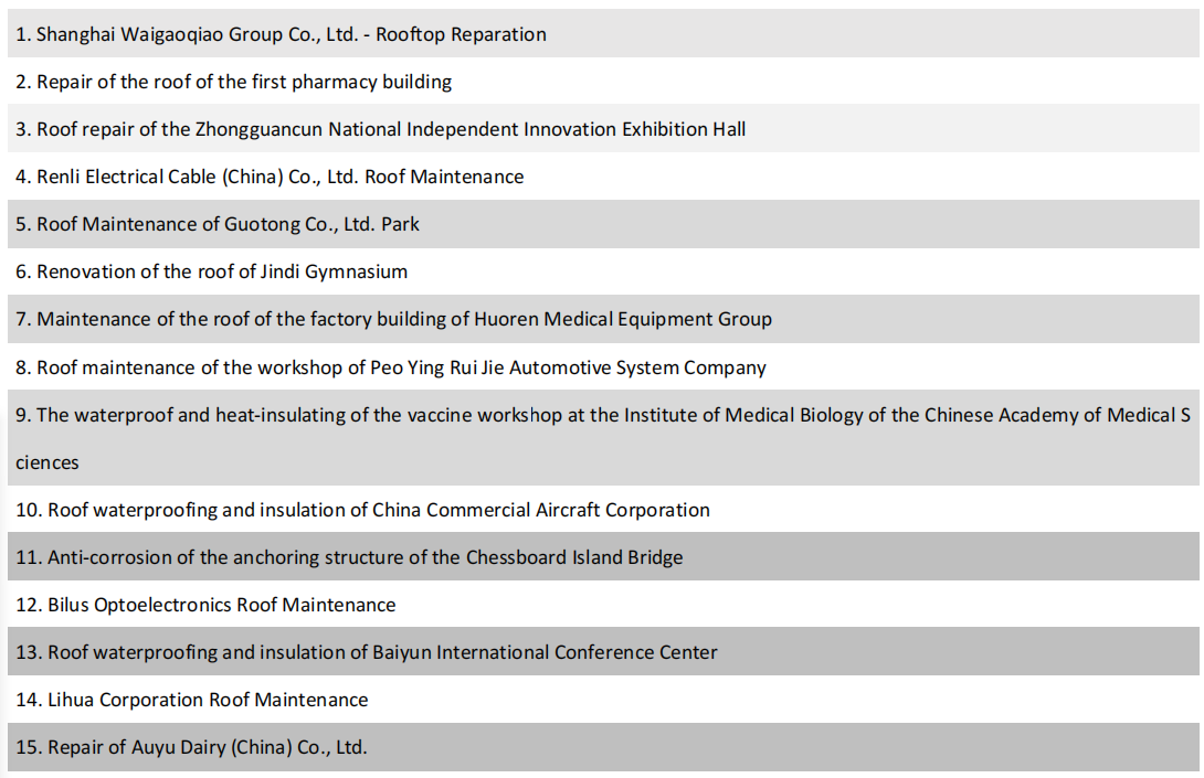 It is widely used in building construction, industrial workshop, pipe gallery, tunnel, pipe, asphalt roofing renovation, color steel roofing renovation, polymer roofing renovation, roofing joint sealing maintenance, skylight sealing maintenance, carriage maintenance and so on