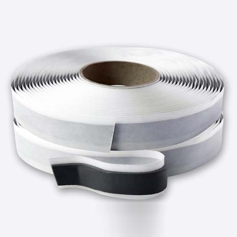 Waterproof butyl rubber tape using butyl rubber as backing, choosing excellent high molecular material and produced by special processing. Environment friendly, solvent free and not solidify permanently.