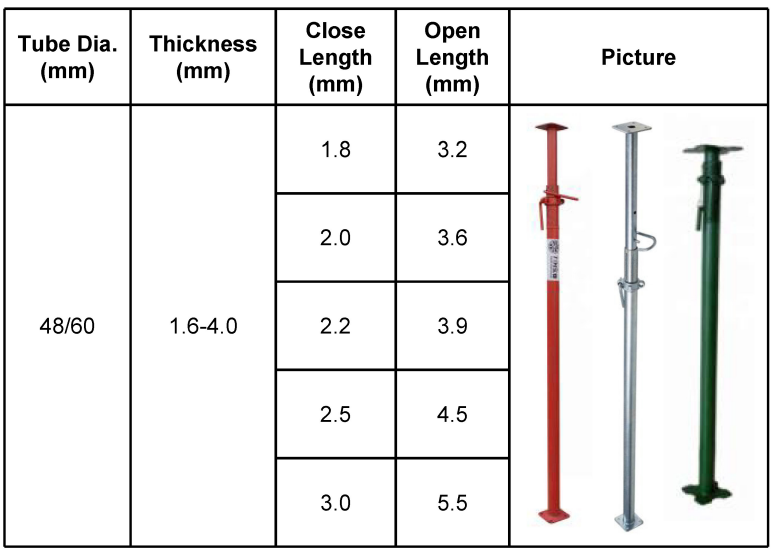 Engineered for maximum strength and safety, they are the ideal choice for propping concrete formwork, supporting beams, and stabilizing structures during work.