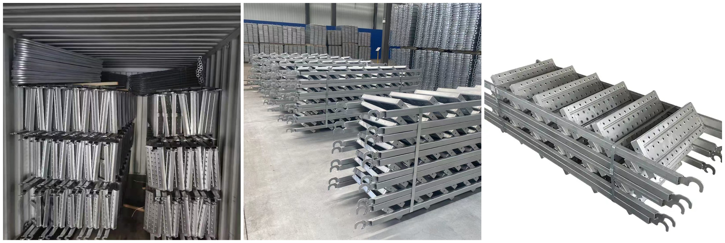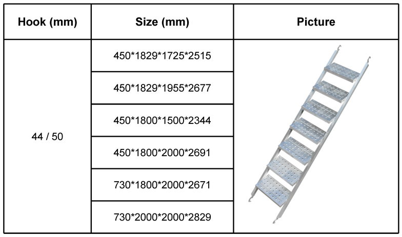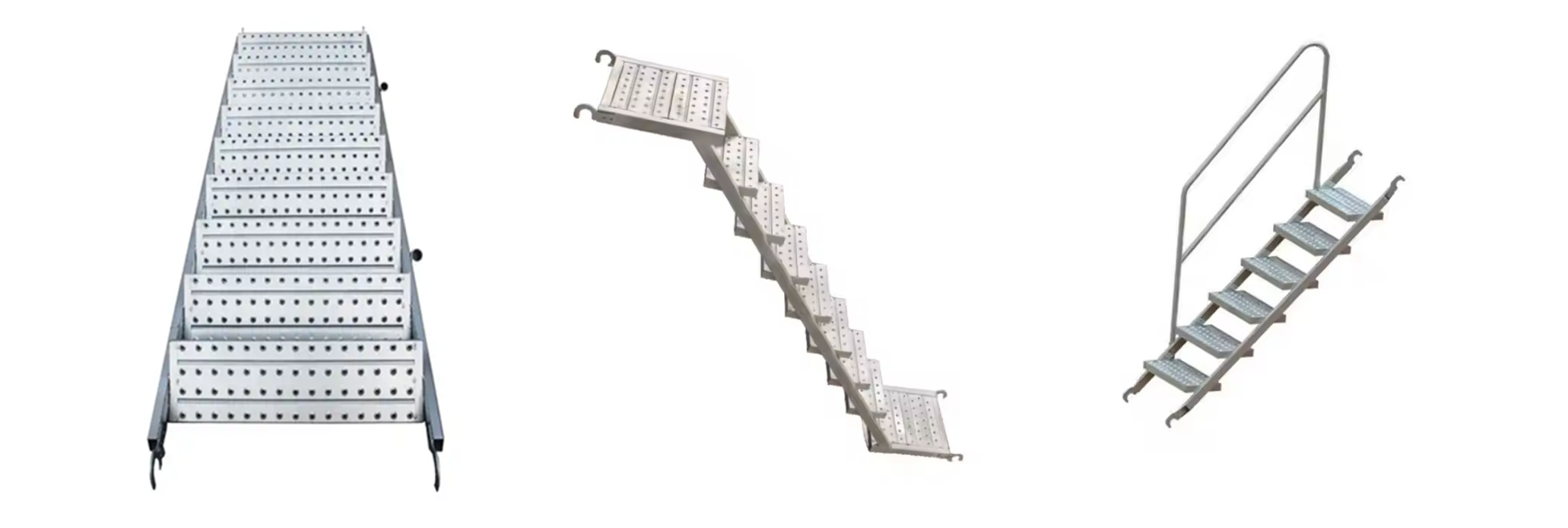 This stairway system is constructed from high-tensile steel tubing. The stair stringers are engineered for optimal incline and rise-to-run ratio, reducing worker fatigue. Each step is a permanently welded serrated tread, and the entire structure is finished with a corrosion-resistant hot-dip galvanized coating. The system bolts directly into your existing scaffold framework, creating a seamless and rigid access point.