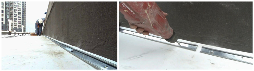 4. Fasten: Drive corrosion-resistant screws with neoprene washers through the pre-drilled holes in the bar, through the membrane, and into the substrate. The bar will compress the membrane and sealant, creating a watertight clamp.